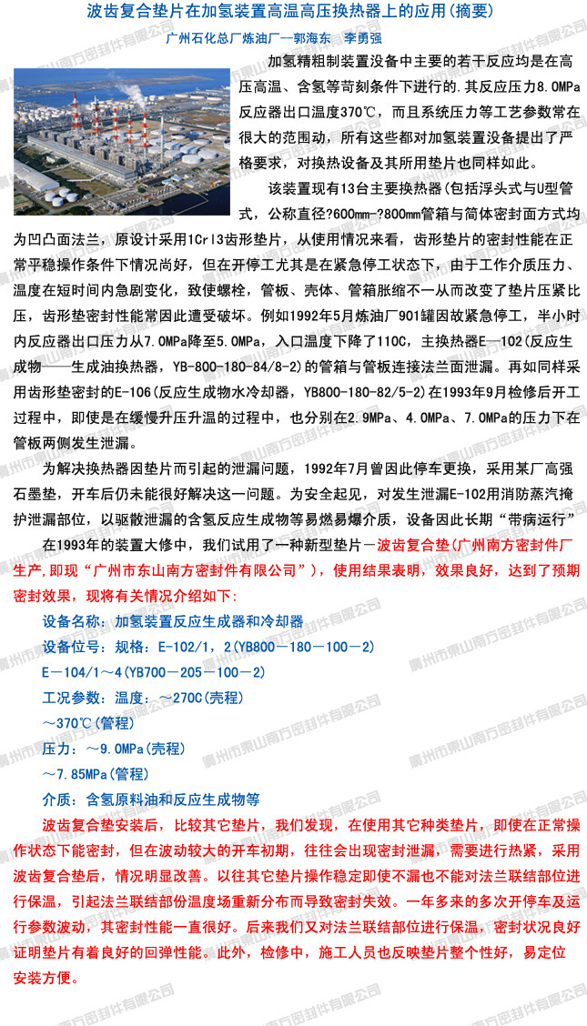 波齒復(fù)合墊片在加氫裝置高溫高壓換熱器上的應(yīng)用。 |